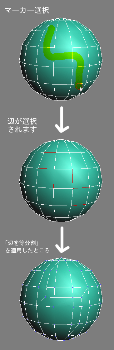 「辺の間に頂点を挿入l」「辺を等分割」(Mashさん作)などで分割してます。